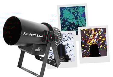 Machines à fumée à jets horizontaux et verticaux, machines à neige, machines à bulles, canons à confettis, rideaux de scène à LED et toiles Lycra